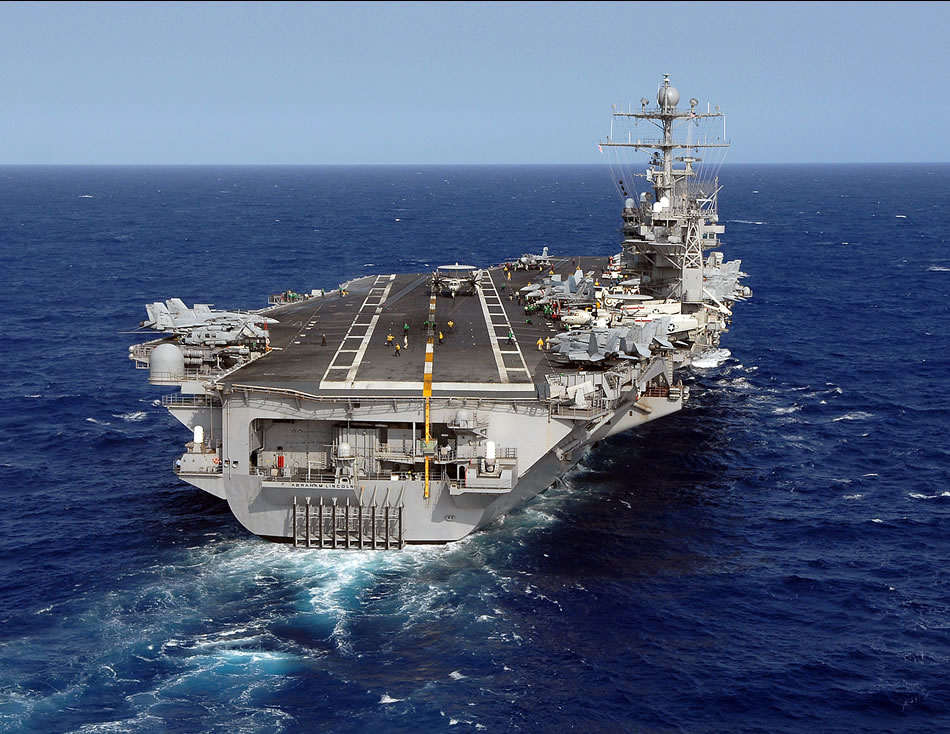 PACIFIC OCEAN (March 27, 2008) The Nimitz-class aircraft carrier USS Abraham Lincoln (CVN 72) sails off the coast of Hawaii. Lincoln, embarked Carrier Air Wing Two, and the rest of Carrier Strike Group (CSG) 9 are on a seven-month deployment to the U.S. 5th Fleet area of responsibility. U.S. Navy photo by Mass Communication Specialist 2nd Class James R. Evans