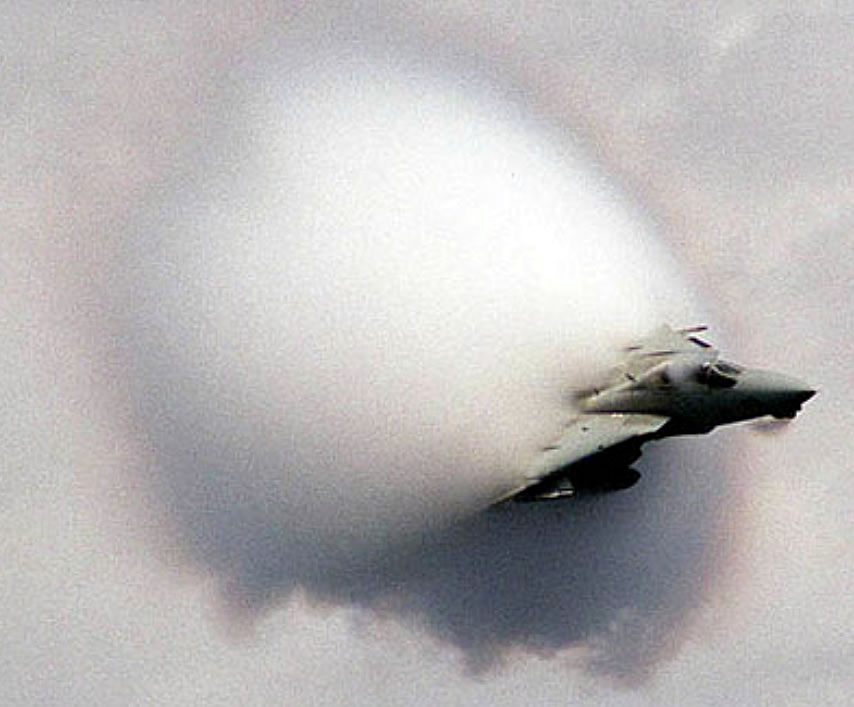 The following is a series of pictures of aircraft breaking the sound barrier with visible traces of the shockwave. In order to see the shockwave the day must be humid.